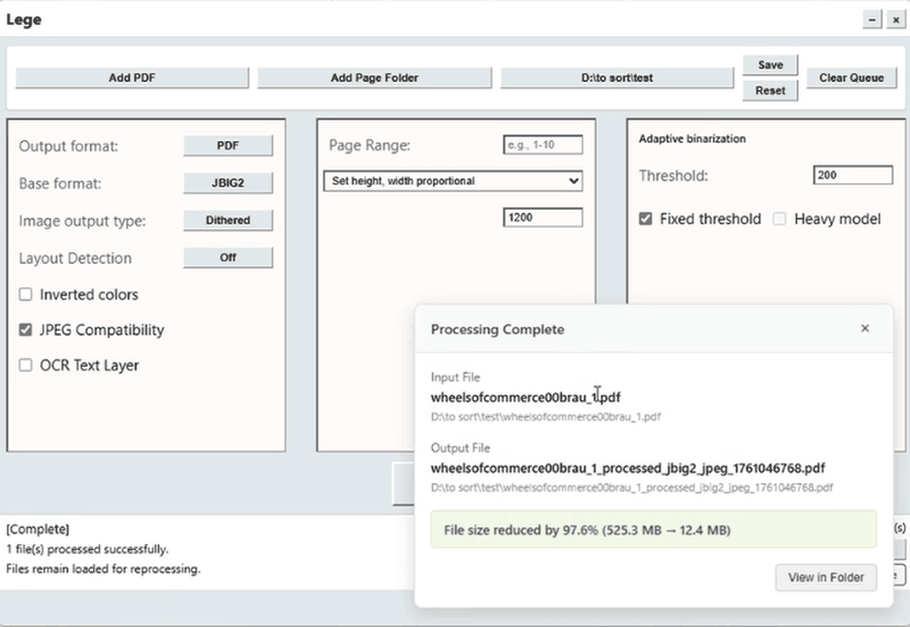 Lege is a full automated pipeline that takes your scans of aged documents and selectively binarizes the text so that they are pleasant to read on any E-ink reader like a Kindle or Kobo. While also offering up to 90% output file size reduction.